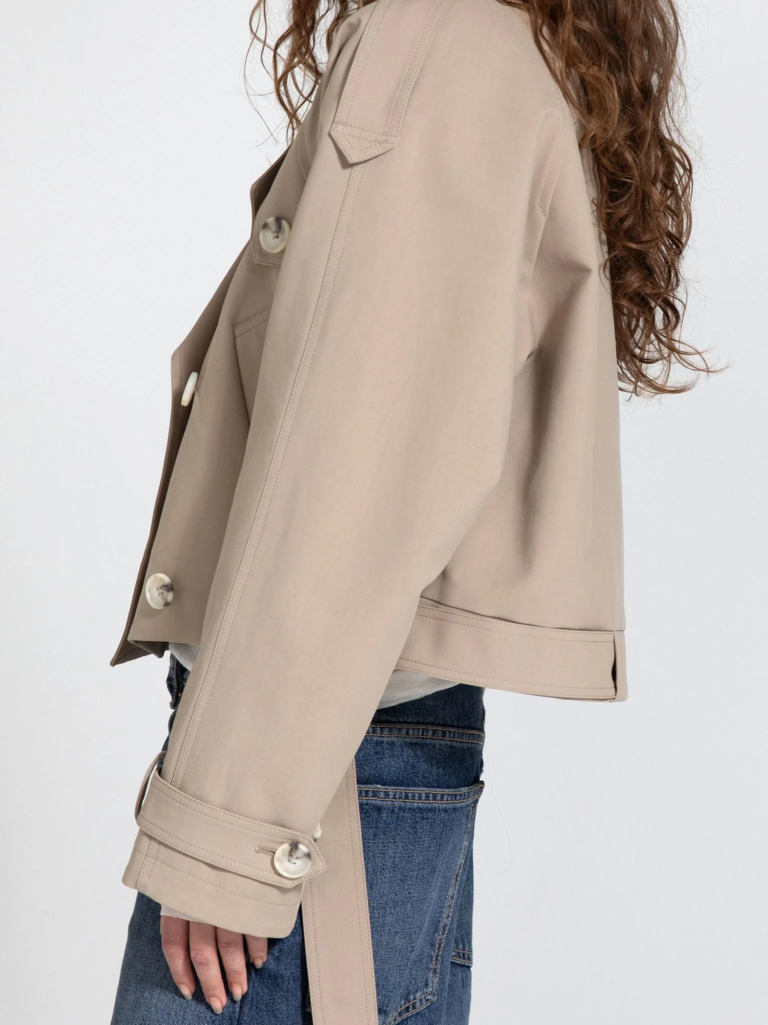 A MEOTINE icon, our Bobby Canvas Trench Jacket is crafted in 100% cotton canvas material with a thin lining making it the perfect style for changing seasons. It features a double-breasted button closure, two welt pockets, shoulder epaulettes, button details and a belt to highlight the waist. The jacket is cut for a boxy fit and is true to size. We recommend sizing down if a closer fit is preferred.