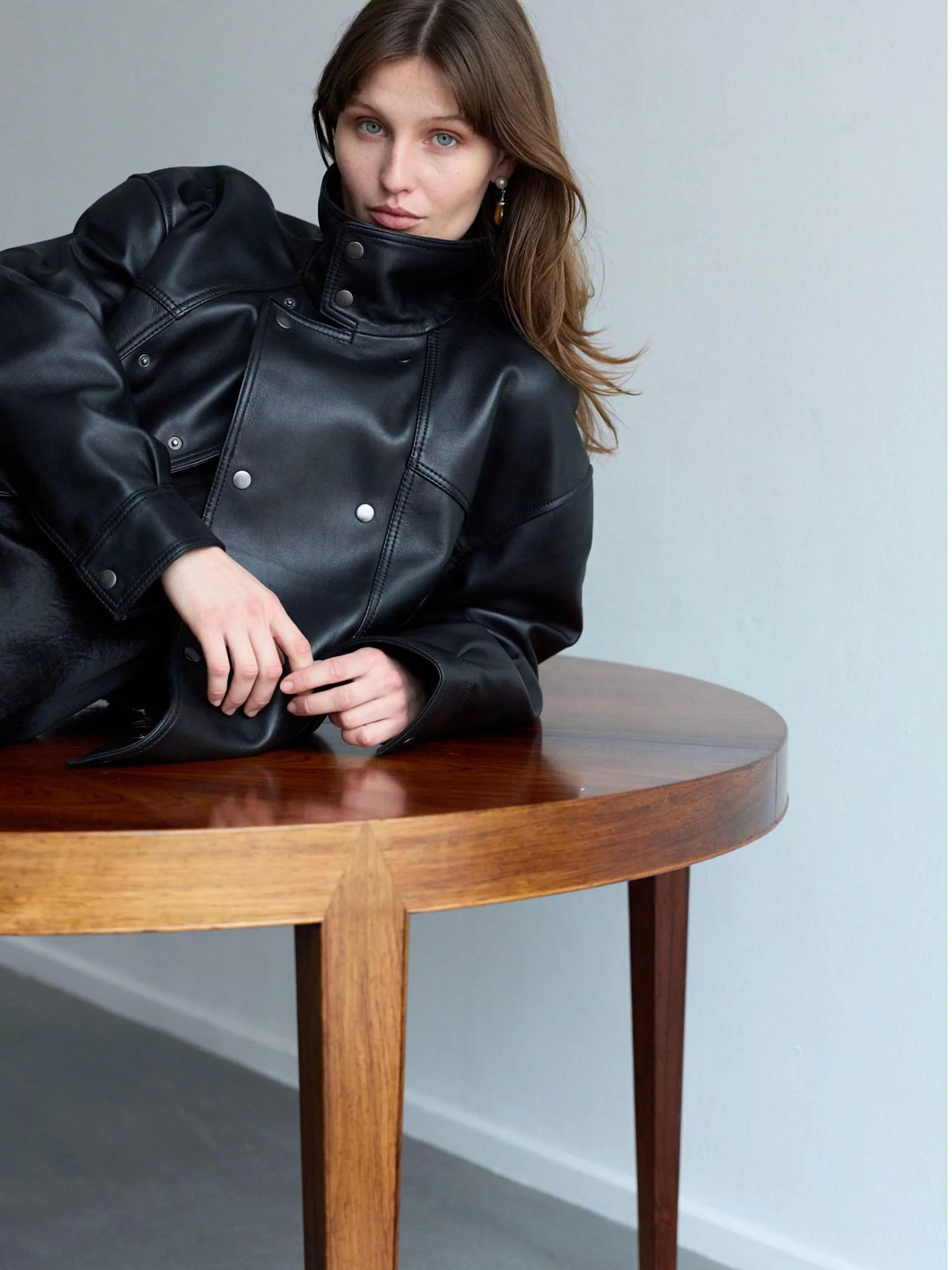 The Indie Jacket is crafted from smooth leather with a soft, structured finish. Designed in a relaxed silhouette, the Indie Jacket has a funnel-neck collar with snap-button detailing and a front snap-button closure. Oversized flap pockets, dropped shoulders and an elasticated hem enhance the structured yet effortless feel. A bold, utility-infused statement for the modern wardrobe.