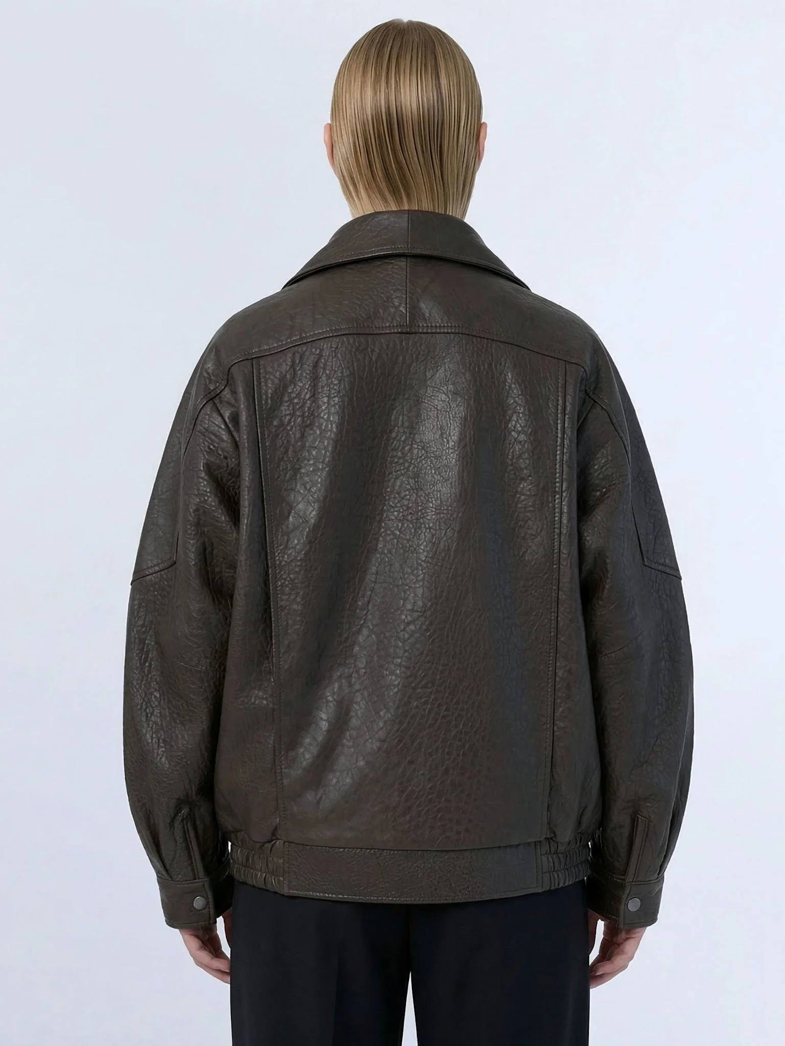 The parker Leather Bomber Jacket combines classic bomber style with contemporary detailing for a bold, elevated look. Crafted from smooth leather, it features a distinctive double collar and an external front closure, adding structure and edge to the relaxed silhouette. Perfect for layering or wearing as a statement piece, this jacket blends timeless appeal with modern attitude.Â